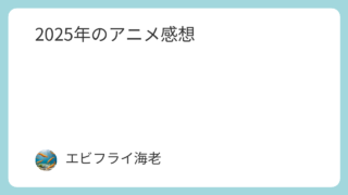 アニメ 2025年のアニメ感想 2025年に放送されたアニメの視聴した感想を書いていく。(基本は全話視聴したアニメ)放送時期:2025年1月~12月。今年もいいアニメに出会えて最高です。 2026.03.29 アニメ
